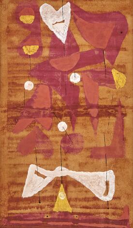 930/51LyngbyAsger Jorn: Uden titel, 1943. Usigneret; betegnet Asger Jorn på bagsiden. Olie på træplade monteret på lærred. 41 x 50 cm.