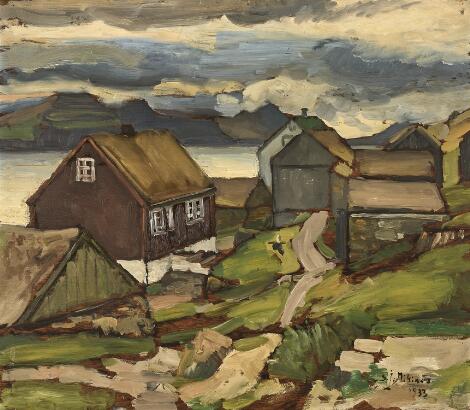 930/224LyngbySamuel Joensen-Mikines: View from Kirkja, The Faroe Islands, 1933. Signed Mikines 1933. Oil on plywood. 76 x 87 cm.