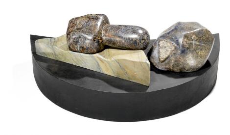 930/262LyngbyPoul Isbak: Untitled, 1994. Signed PI 94. White, brown and blue speckled marble. Three parts. Overall c. 60 x 120 cm.