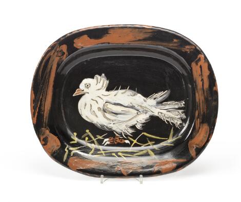 930/275LyngbyPablo Picasso: "Colombe sur lit de paille", 1949. Faience dish with decoration. Executed in 300 ex. 32 x 39 cm.