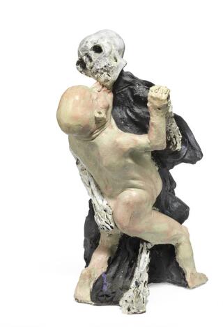 930/260LyngbyJørgen Haugen Sørensen: "Mens vi venter", 2005. Unsigned. Painted bronze. H. 39 cm.