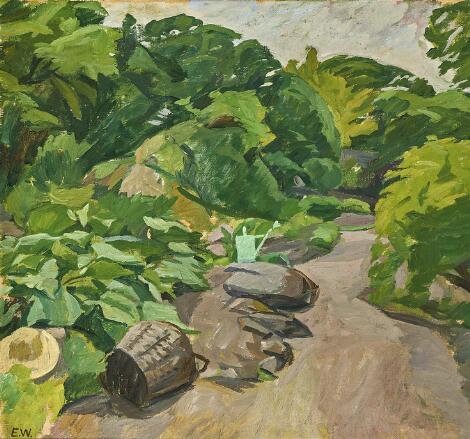 930/230LyngbyEdvard Weie: Garden, Christiansø. Signed E.W. Painted recto et verso. Oil on canvas. 53 x 57 cm.