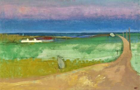 930/238LyngbyOluf Høst: "Vid udsigt henunder aften ved solnedgang", Bornholm 1940. Signed O.H. Oil on canvas. 65 x 100 cm.