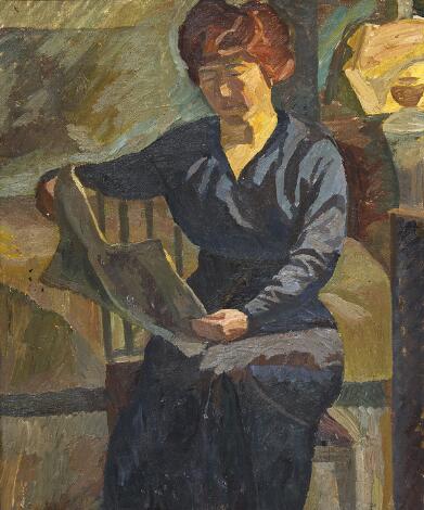 930/235LyngbyEdvard Weie: Interior with a woman reading. Signed Edv. Weie. Oil on canvas. 42 x 35 cm.