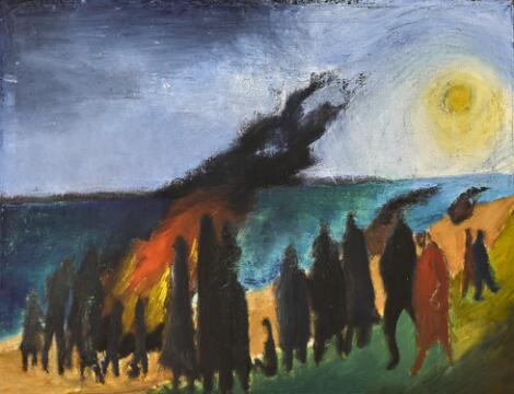 930/239LyngbyJens Søndergaard: Figures at Sct. Hans's bonfire. Signed on the reverse. Oil on canvas. 68 x 88 cm.