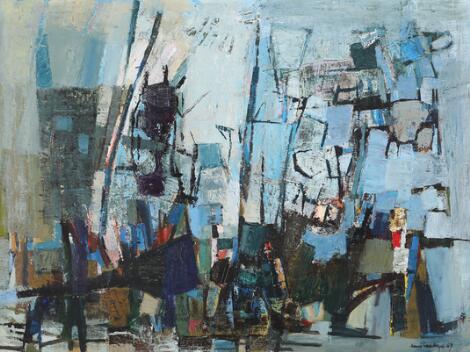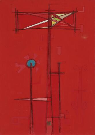 2603/559LyngbySven Dalsgaard: "Signal Herning", 1960. Signed on the reverse with title and date. Oil on canvas. 71 x 50 cm.