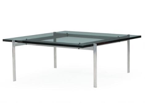 2603/537AarhusPoul Kjærholm: "PK 61". Square coffee table with steel frame and glass top. H. 32.5. L./W. 80 cm.