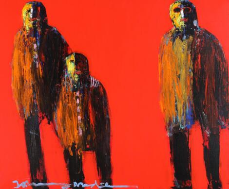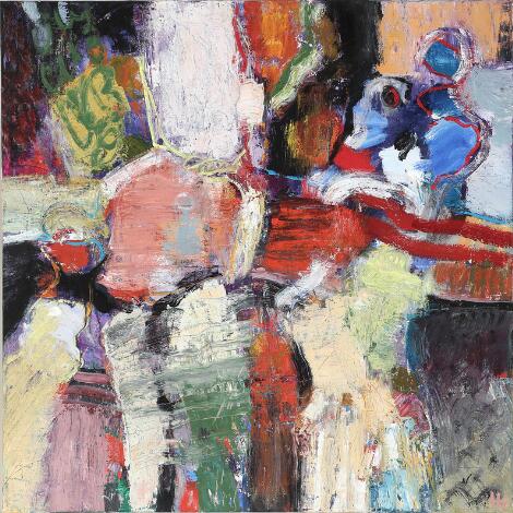 2603/520LyngbyHans Tyrrestrup: "Figures sur mur", 1997. Signed monogram. Oil on canvas. 100 x 100 cm.