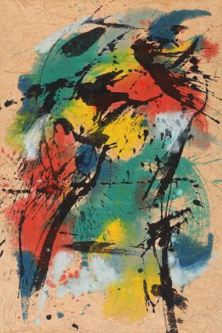 2603/551AarhusRobert Jacobsen: Untitled. Signed Robert Jacobsen. Indian ink and watercolour on rice paper laid on canvas. 92 x 62 cm.