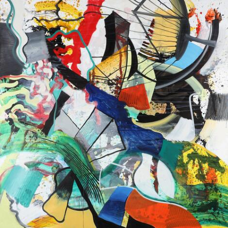 2603/503AarhusLars Nørgård: "En prop i havet" (A cork in the Ocean), 2007. Signed, titled and dated on the reverse. Oil on canvas. 200 x 200 cm.