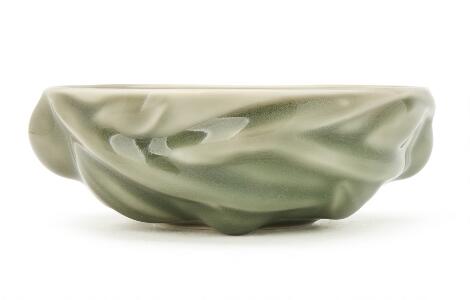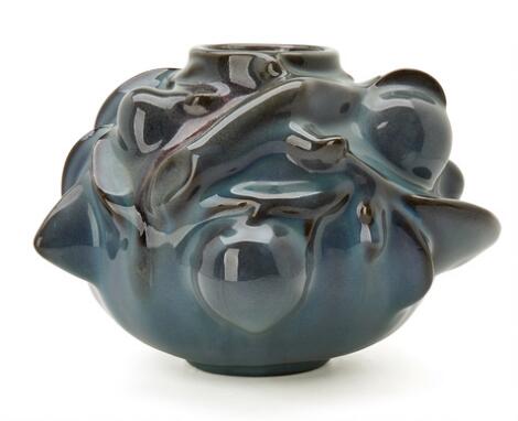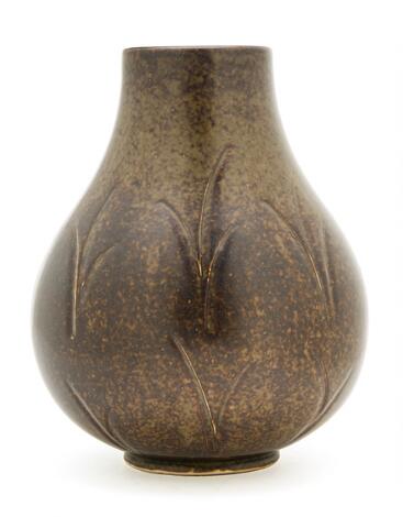 2603/519LyngbyAxel Salto: A round stoneware vase modelled with leaves and fruits. H. 14.5 cm. Diam. 20.5 cm.