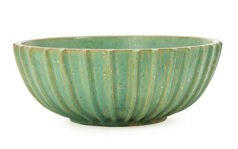 2603/531LyngbyArne Bang: A large stoneware bowl, the outside modelled with vertical fluted relief decor. Diam. 30.5 cm.