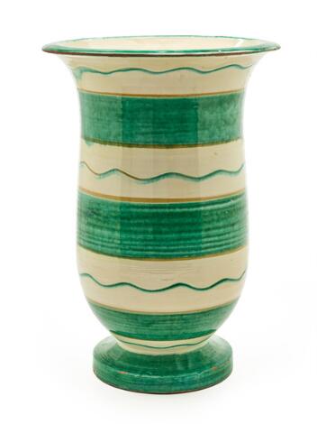 2603/522LyngbyKähler: An earthenware floor vase decorated with cream coloured and green glaze. H. 44 cm.