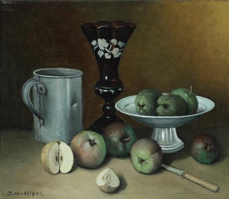 2603/556LyngbyJeppe Madsen-Ohlsen: Still life. Signed J-M-Ohlsen. Oil on canvas. 38 x 45 cm.