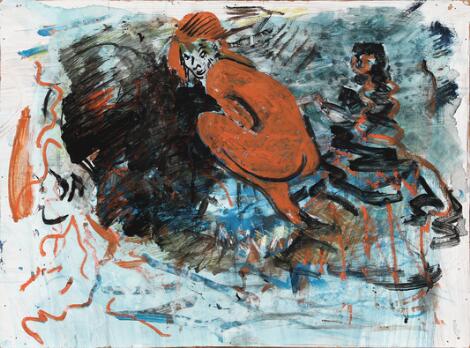 2603/542AarhusPoul Gernes: Untitled. Signed Poul Gernes. Oil on cardboard. Sheet size 45 x 90 cm.