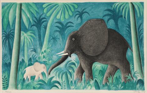 2603/538LyngbyHans Scherfig: "I Urskoven”. Signed Scherfig 1970, 189/280. Lithograph in colours. Visible size 40 x 62 cm.