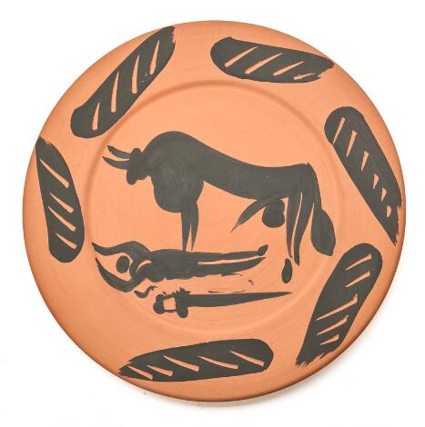 2603/544LyngbyPablo Picasso: "Scene de tauromachie", 1957. Marked Edition Picasso, 67/500, Madoura. Red earthenware with black glaze. Dia. 23 cm.