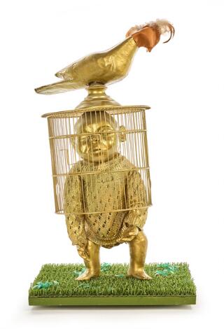2603/523LyngbyLuis Vidal: "Lindo". Signed underneath monogram 2004. Bronze painted metal with application; mounted on a base of plastic grass. H. 72 cm.