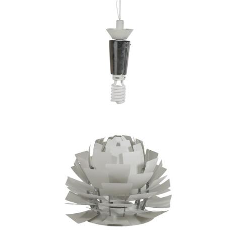 2603/530AarhusPoul Henningsen: "Artichoke". A pendant with white lacquered metal lamellaes. Manufactured by Louis Poulsen. Diam. 72 cm.