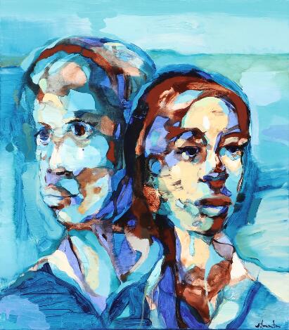 2603/547LyngbyVilmantas Marcinkevicius: Couple with the Moon", 2012. Signed Vilmantas. Oil and acrylic on canvas. 80 x 70 cm.