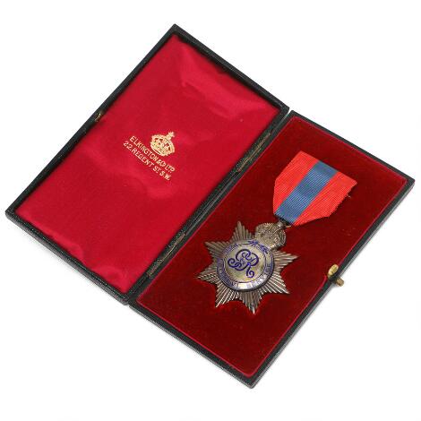 2545/5274England, Imperial Service Medal, George V, star type, in silver, bronze and enamel, awarded to Frances R. H. Lee, in original box.