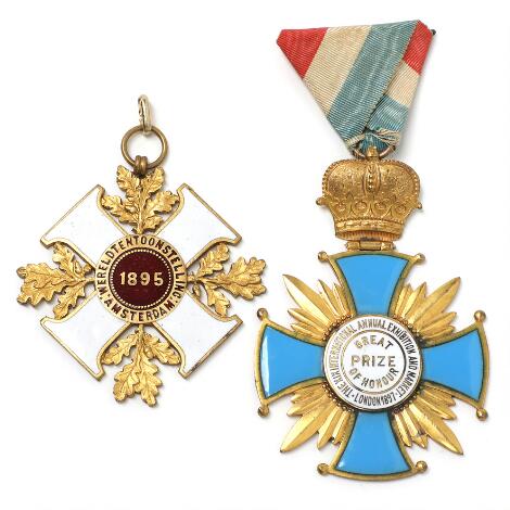 2545/5276England, den 19. internationale årlige udstilling og marked, London 1897, hæderspris; Nederlandene, Verdensudstillingen Amsterdam 1895