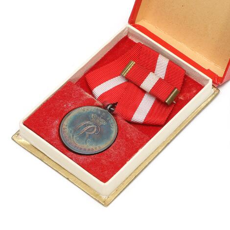 2545/5272Christian VII, Fortient. 29. januar 1801 for god tieneste ved Søværnet, sølv m. bånd, i original æske