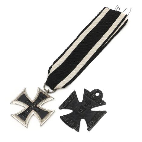 2549/5334Germany, Iron Cross 1914, 2nd class, silver and iron; England, mocking cross in cast iron. (2)