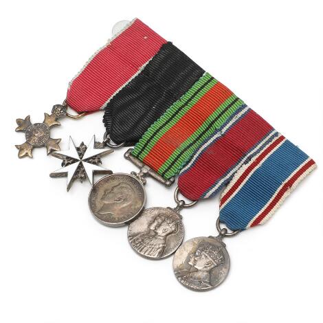 2549/5323England, A Miniature Medal Bar, Order of the British Empire, Order of St. John, The Defence Medal, The Jubilee Medal 1935, The Coronation Medal 1937. (5)