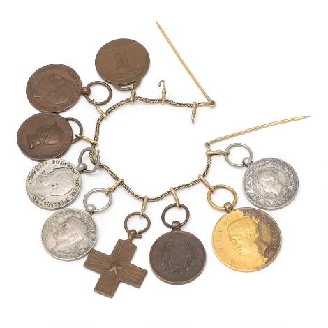 2549/5325Italy, chain with 9 miniature medals, mosty concerning the 1908 earthquake in Sicily and Calabria and the First World War. (9)