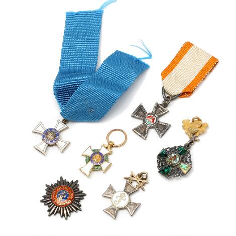 2551/5329GlostrupBar of miniature medals, incl. Belgium, Order of the Crown, France, Legion of Honour, Italy, Order of the Crown, Netherlans, Order of Orange, in total 10 pcs