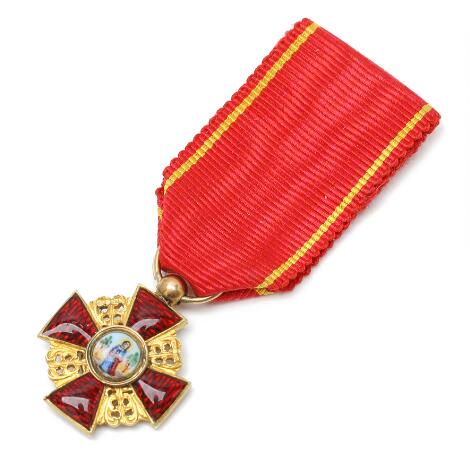 2549/5329Russia, Order of St. Anne, miniature badge in gold and enamel, with ribbon