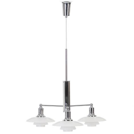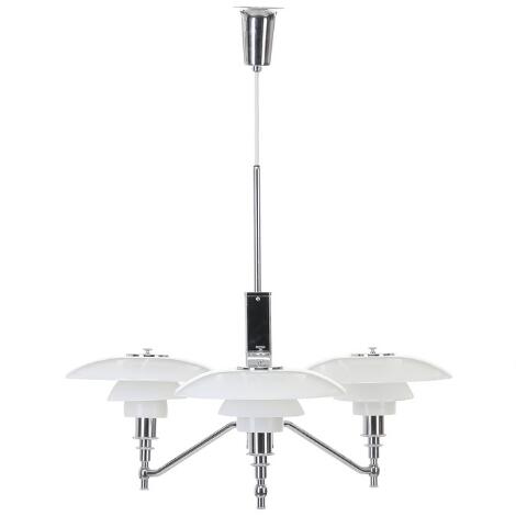 2549/1021Poul Henningsen: “PH 2/1 Stammekrone”. Tre-armet lysekrone med forkromet stel, skærme af opalglas.
