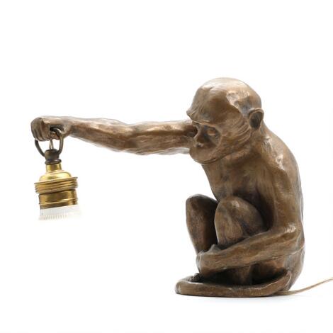 2545/575Jørgen Windfeld-Schmidt: A patinated bronze piano lamp in the shape of a monkey. Signed and dated. H. 21 cm.
