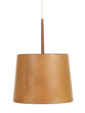 2545/738Danish design: A rosewood pendant with shade covered with brown leather. 1960s. H. 30. Diam. 38 cm.