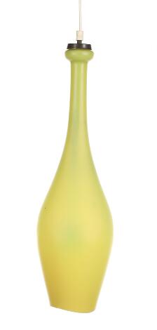 2545/741Danish design: A pendant with green glass shade and brass mounting. 1960s. H. 55 cm.