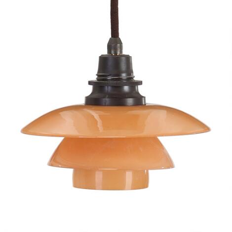 2545/669Poul Henningsen: "PH-1/1". Pendant with bakelite socket house. Rose coloured frosted glass shades.