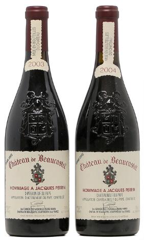2546/3241Glostrup1 bt. Chateauneuf-du-Pape "Hommage a Jacques Perrin", Chateau de Beaucastel 2003 A (hf/in). etc. Total 2 bts.