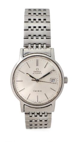 2547/2025LyngbyOmega: Armbåndsur af stål. Model Genève, ref. 166.0163. Mekanisk værk med automatisk optræk og datovisning, kaliber 1012. 1973.