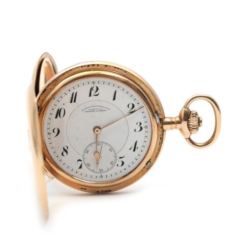 2547/2017AarhusA. Lange & Söhne, Deutsche Uhrenfabrikation, Glashütte I/SA, dobbeltkapslet lommeur af 14 kt. guld.