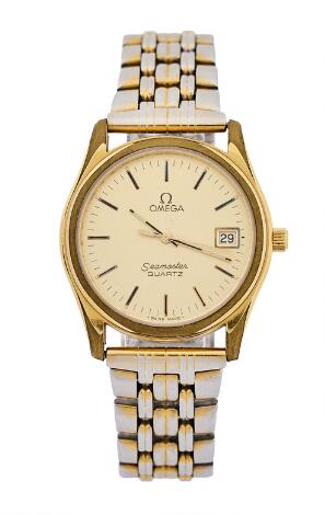 2547/2031LyngbyOmega: Seamaster af guldbelagt stål, ref. 196.0190. Quartz-værk med datovisning. 1979 (solgt 1982).