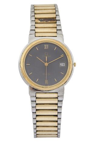 2547/2042LyngbyOmega: De Ville af guldbelagt stål og stål. Quartzværk med datovisning, kaliber 1430. 1990’erne