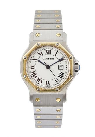 2547/2034LyngbyCartier: Santos Octagon af 18 kt. guld og stål, ref. 2966. Mekanisk værk med automatisk optræk og datovisning. 1990’erne.