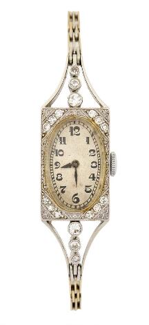 2547/2054LyngbyArmbåndsur prydet med talrige diamanter af 18 kt. hvidguld. Mekanisk værk med manuelt optræk. 1930’erne