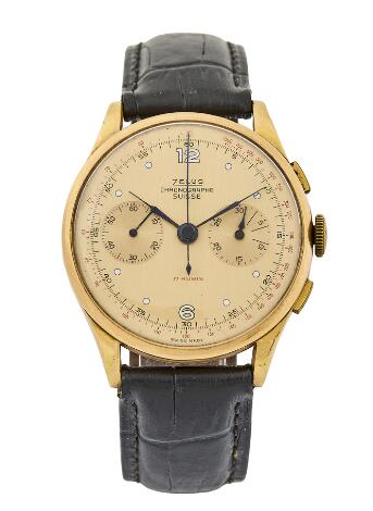 2547/2010LyngbyZelus: Armbåndsur af 18 kt. guld. Mekanisk kronografværk med manuelt optræk. 1960’erne