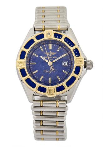 2547/2011LyngbyBreitling: Lady J af 18 kt. guld og stål, ref. D52065. Quartzværk med datovisning. 1990’erne