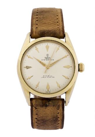 2547/2055LyngbyTudor: Oysterthin af guldforgyldt stål, ref. 7960. Mekanisk værk med manuelt optræk. 1960’erne.