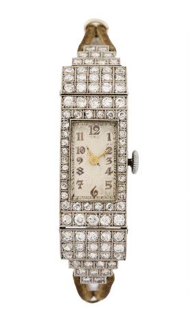 2547/2052LyngbyArmbåndsur med old-cut diamanter af platin. Mekanisk værk med manuelt optræk. 1930’erne