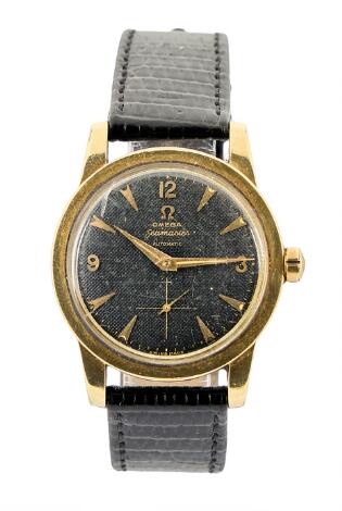Omega: Seamaster "Honeycomb dial" in gold-plated steel, ref. 2576-21. Mechanical bumper movement with automatic winding, calibre 344. 1952