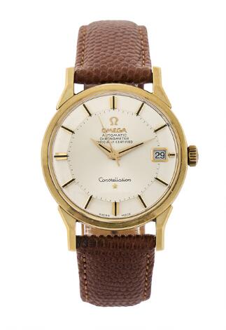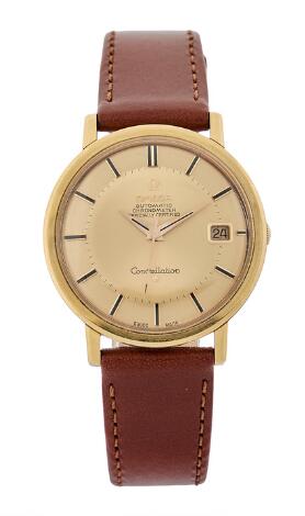 Omega: Constellation in 18k gold, ref. 168004/14. Mechanical movement with automatic winding and date display, calibre 561. 1966